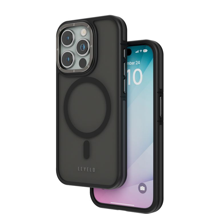 حافظة Levelo Rouge MagSafe غير اللامعة مع حلقة معدنية للكاميرا، حواف مقاومة للصدمات، متوافقة مع MagSafe، مقاومة للخدش 3H، زوايا معززة مع Airguard، تصميم بلمسة نهائية غير لامعة - أسود