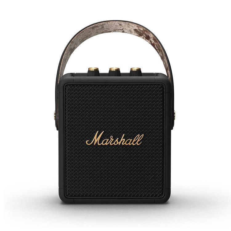 مكبر صوت ستيريو لاسلكي من مارشال ستوكويل 2 بتقنية البلوتوث، بطارية ليثيوم أيون، IPX4، وقت تشغيل 20 ساعة، وقت شحن 5 ساعات، اتصال لاسلكي - أسود/نحاسي