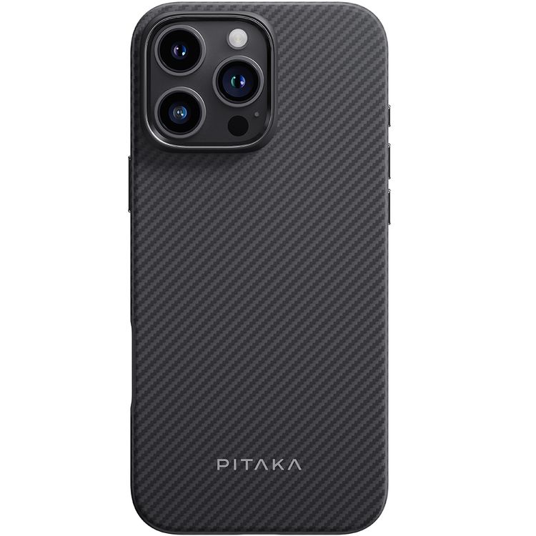 حافظة Pitaka العسكرية، حافظة مقاومة للصدمات، حافة كاميرا مرتفعة، NFC مدمج، متوافقة مع MagSafe - أسود / رمادي