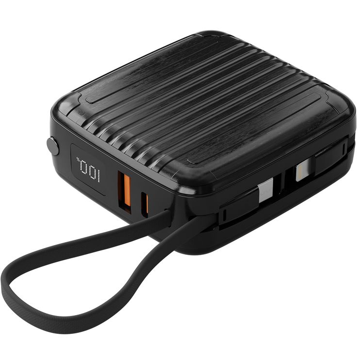 باور بانك بورودو ماج سيف 10000 مللي أمبير في الساعة، كابلات Type-C وLightning مدمجة، شاشة رقمية، مخرج لاسلكي 15 وات، محمول، PD 20 وات، QC 22 وات - أسود