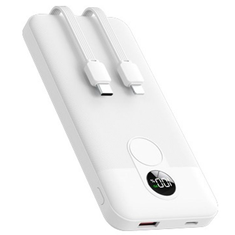 بورودو باور بانك بسعة 10000mAh مع كابل مدمج من نوع Type-C وLightning، مع توصيل طاقة بقدرة 22.5 واط، شحن متزامن، شحن بنسبة 0%-60% في 35 دقيقة، شاشة رقمية - أبيض.