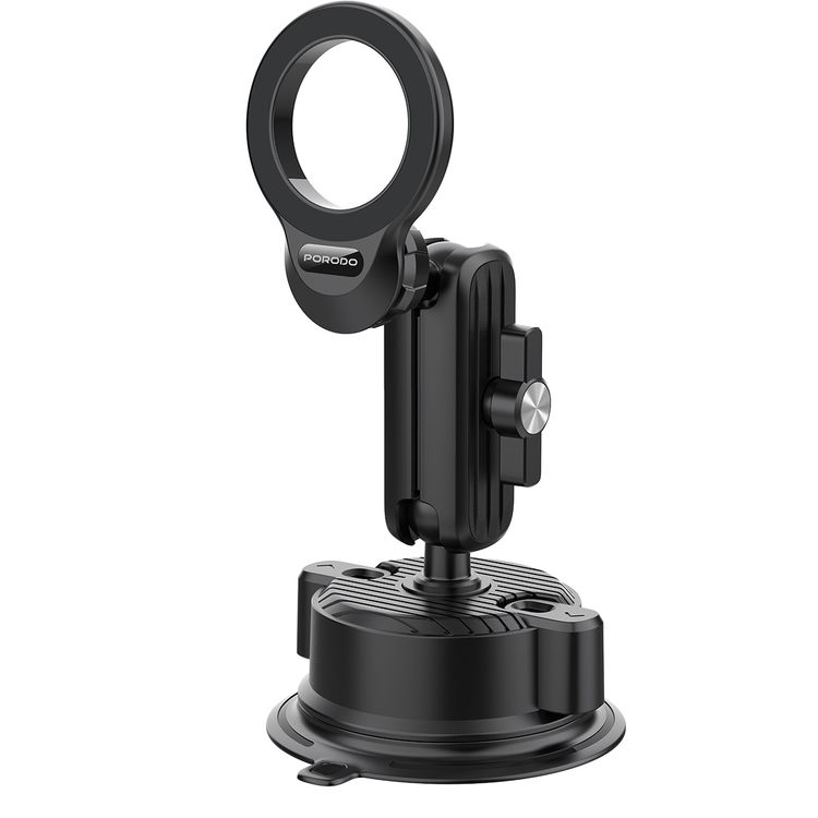 حامل السيارة Porodo 360° قابل للتعديل مع MagSafe ومزود بقاعدة شفط، أفقي وعمودي، لاصق قوي، يحتوي على 17 مغناطيس قوي، تصميم قابل للطي - أسود