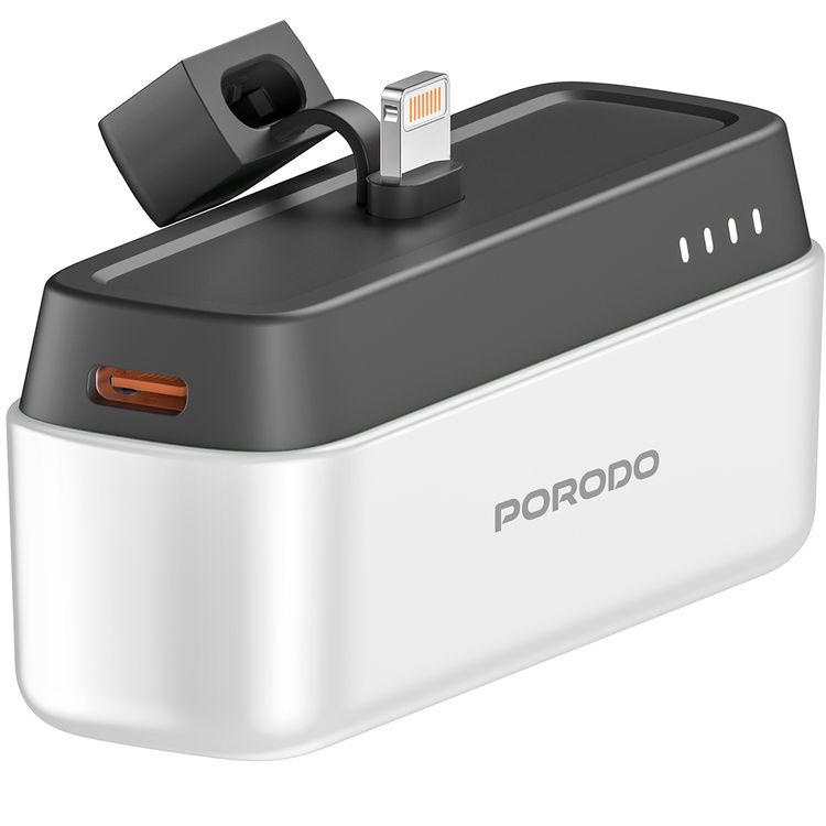 بورودو باور بانك بسعة 5000 مللي أمبير مع موصل لايتنينج، بقوة 20 واط لتوصيل الطاقة، صغير ومحمول، شحن من 0% إلى 60% في 35 دقيقة، بحجم الجيب - أبيض