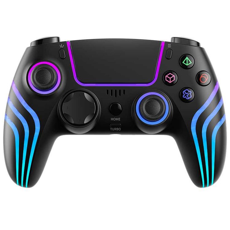وحدة تحكم ألعاب Porodo Gaming PS4 مع أنماط إضاءة رائعة ومنفذ شحن من النوع C وتوافق مع PS4 وPS3 وMac وWindows وSteam Deck وiOS وAndroid - أسود