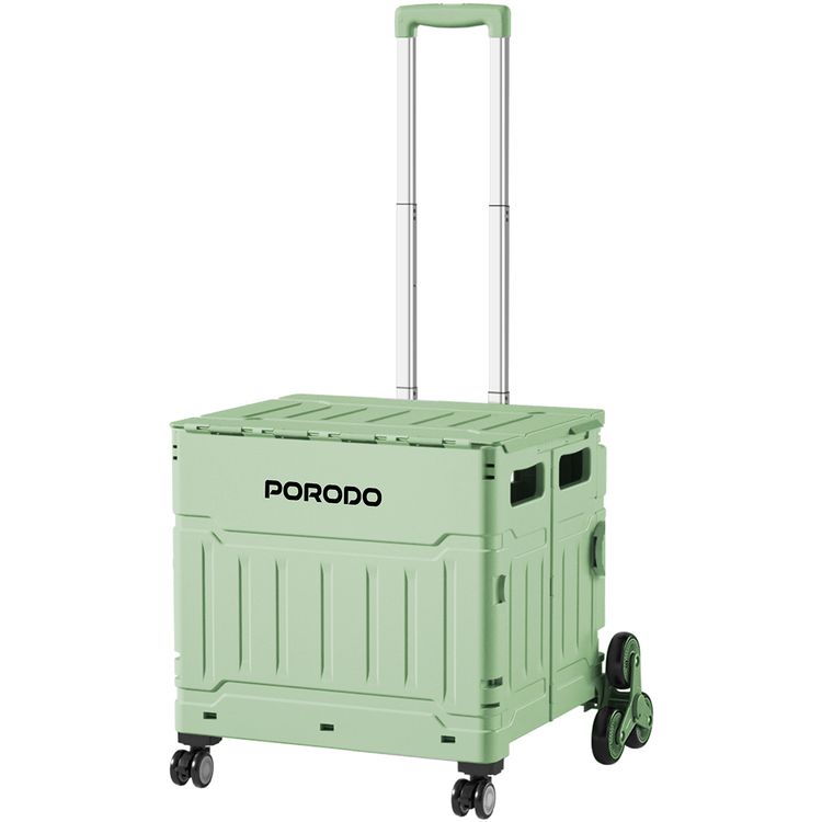 عربة بوروودو لايف ستايل القابلة للطي بتصميم ذكي، سعة 75 لتر، طول مقبض بمستويين، 8 عجلات، مقبض فولاذي - اللون الأخضر