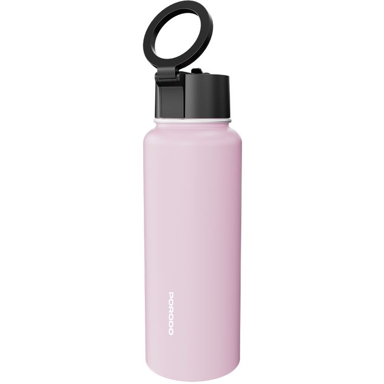 زجاجة مياه بحامل مغناطيسي من بورودو لايف ستايل بسعة 1 لتر، مصنوعة من الفولاذ المقاوم للصدأ، شفاطة مدمجة، تثبيت مغناطيسي قوي، عزل مزدوج الجدار - وردي