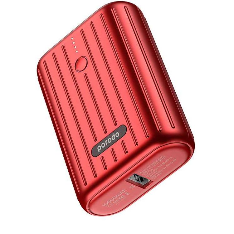باور بانك بورودو 10000 مللي أمبير في الساعة QC3.0 مع PD 20 وات، مخرج مزدوج، وقت شحن 3.5 ساعة، تصميم فريد، محمول، شحن سريع - أحمر