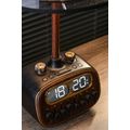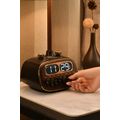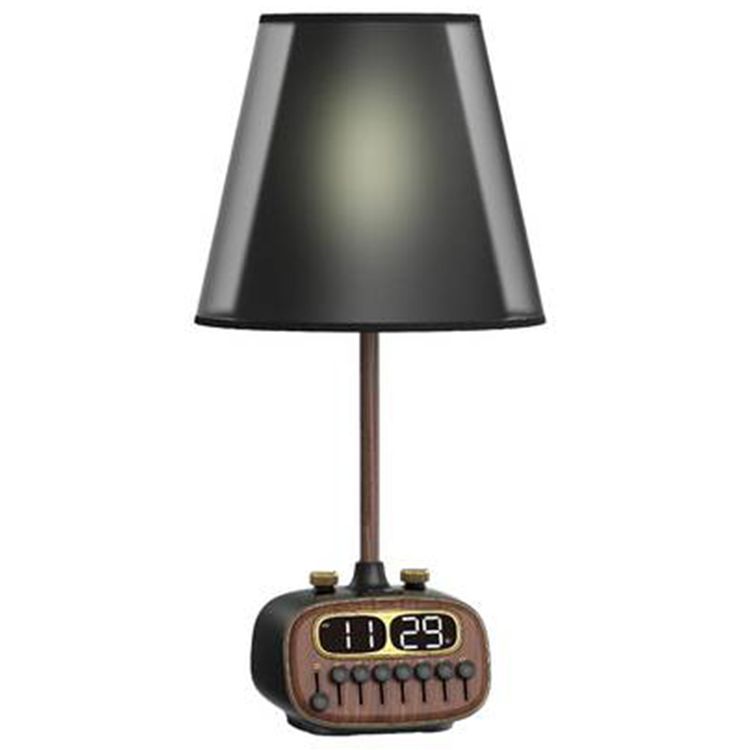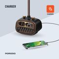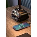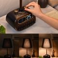 مصباح مكتبي ريترو من بورودو مع ضوضاء بيضاء ومكبر صوت بتقنية البلوتوث ووظيفة التنبيه والغفوة و3 مستويات سطوع (منخفضة ومتوسطة وعالية) وشحن لاسلكي مزدوج وشاشة رقمية عالية الدقة - أسود