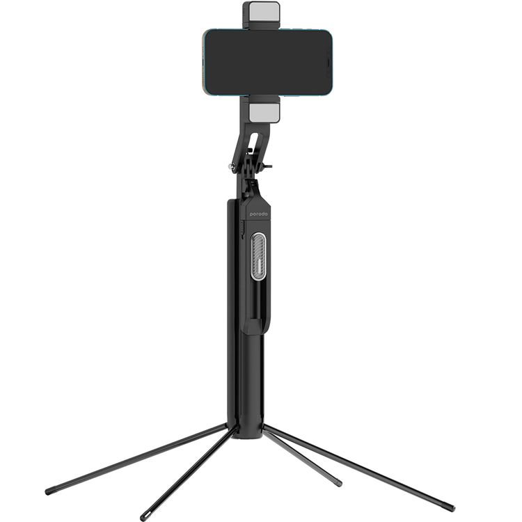عصا سيلفي بورودو 185 سم قابلة للتمديد مع مصابيح مزدوجة قابلة للفصل، حامل ثلاثي القوائم بأربعة أرجل وجهاز تحكم عن بعد - أسود