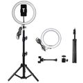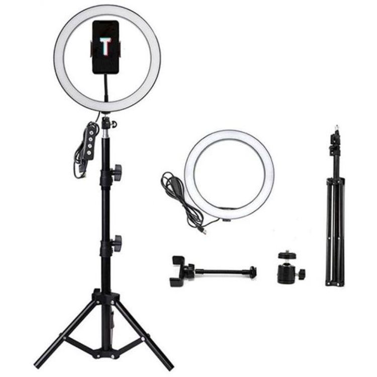 بوير بلاس مصباح حلقي ليد بيوتي لايف 33 سم مع حامل ثلاثي القوائم وحقيبة للحمل ، 3 أوضاع إضاءة (أبيض ، ضوء ناعم ، ودافئ) سطوع قابل للتعتيم ، مصباح حلقي للعرض 360 درجة مناسب للبث المباشر والماكياج والتصوير الفوتوغرافي - أسود