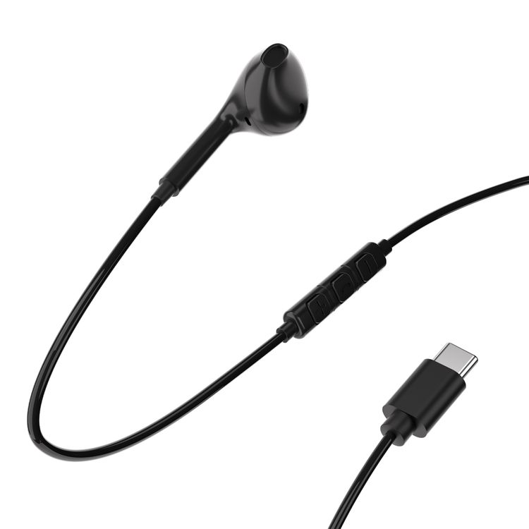 Powerology Mono USB-C Earphones 1.2M - Black - أسود