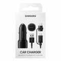 شاحن سيارة سامسونج بمنافذ يو اس بي أ المزدوجة 15 وات مع كابل كومبو ومنفذ شحن سريع ومحول طاقة صغير الحجم للسيارة مع مؤشر ضوء أزرق ليد - أسود