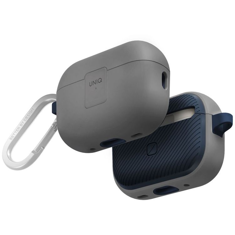 سماعات UNIQ Clyde Airpods Pro الجيل الثاني، تصميم هجين مزدوج الطبقات، حلقة تثبيت من الألومنيوم الفاخر، شحن سلكي ولاسلكي - رمادي