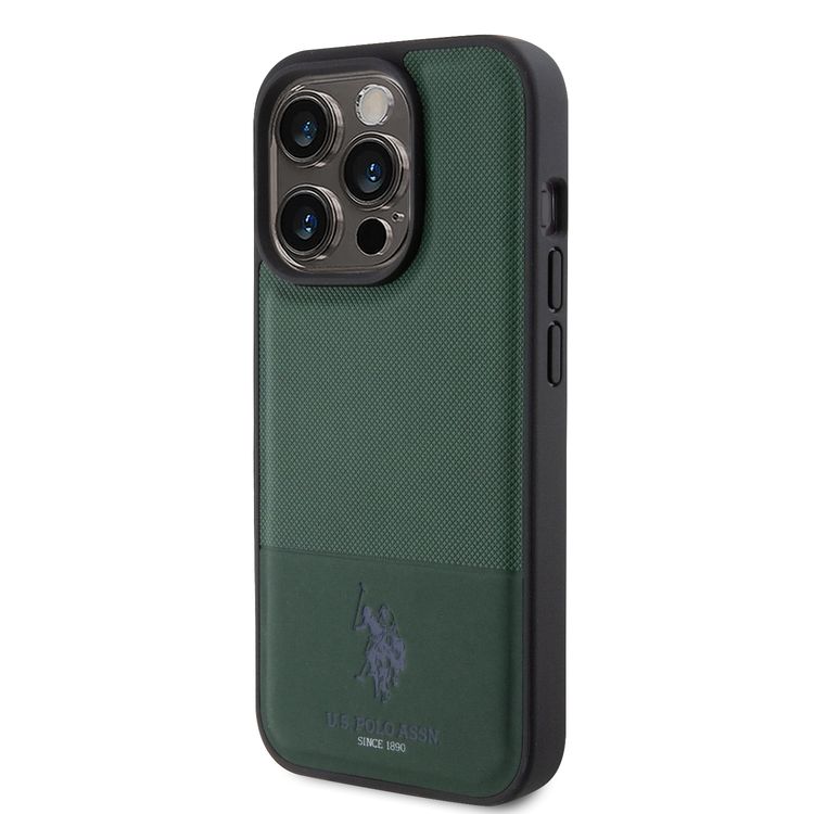 U.S.Polo Assn. PU Leather Mesh Pattern DH Case for iPhone 15 Pro Max - Black - أخضر - iPhone 15 Pro