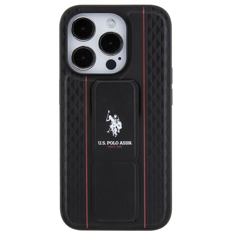 يو اس بولو أسن. حافظة بمسند من جلد البولي يوريثان بنمط محكم لسلسلة هواتف iPhone 15 - أسود - iPhone 15 Pro Max