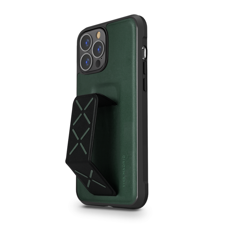 كفر حماية مورفيكس من الجلد الصناعي من Viva Madrid مع حامل مقبض متعدد الوظائف قابل للطي متوافق مع هاتف iPhone 13 Pro Max