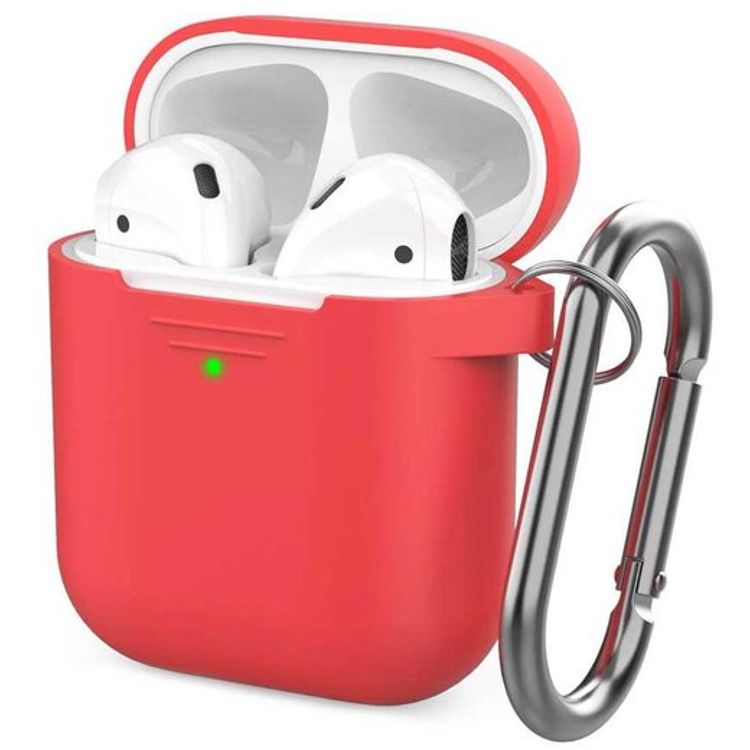 اهاستايل جراب من السيليكون على شكل سلسلة مفاتيح لأجهزة ايربودز من الجيل 1/2 ، مقاوم للخدش ، مقاوم للسقوط ، مقاوم للغبار والامتصاص مع جراب تعليق لسماعات ابل ايربودز 1/2 ، علبة شحن لاسلكية ، احمر