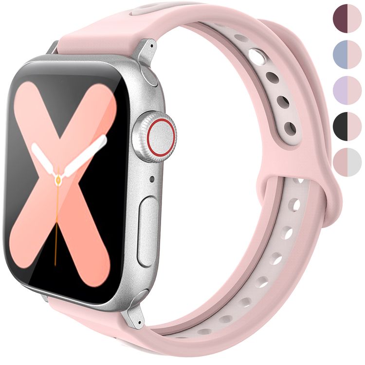 AhaStyle حزام ساعة أبل من السيليكون الفاخر بتصميم ديوتون 38/40 ملم حزام رياضي متوافق مع سلسلة ساعات ابل SE / 6/5/4/3 - وردي