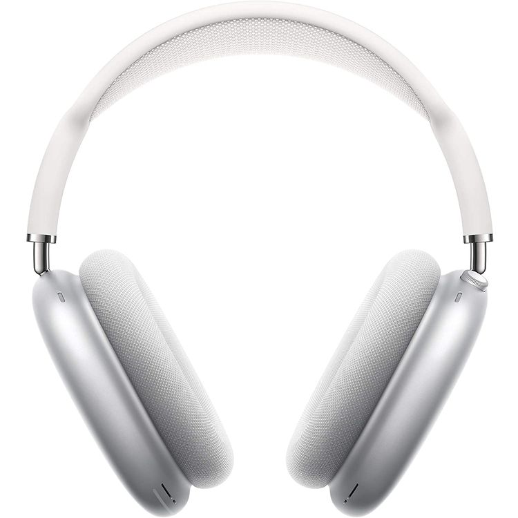 سماعات ابل ايربودز ماكس فضية مع عصابة رأس بيضاء، خاصية إلغاء الضوضاء النشطة، وضع الشفافية - فضي/ أبيض