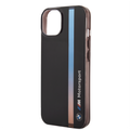 BMW Motorsport Collection PC/TPU IML Case with Printed Tricolor Fading Stripe iPhone 14 Plus Compatibility - Black