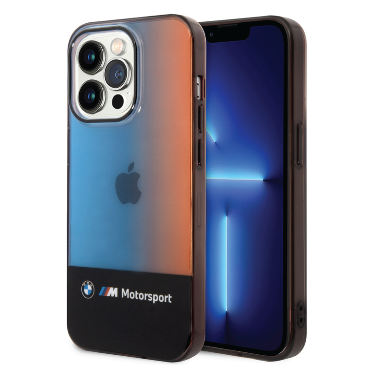 BMW Motorsport Collection PC/TPU IML Case with Printed Middle Tricolor Fading Stripe iPhone 14 Pro Max Compatibility - Black