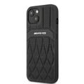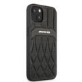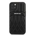 CG MOBILE AMG Genuine Leather Case With Perforated Black Leather Curved Lines Hot Stamped With Logo Compatible with iPhone 13 Pro Max (6.7") Easy Access to All Ports, Shock-Absorption, Anti-Scratch, & Drop Protection Back Cover Suitable with Wireless Charging Officially Licensed