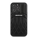 CG MOBILE AMG Genuine Leather Case With Perforated Black Leather Curved Lines Hot Stamped With Logo Compatible with iPhone 13 Pro Max (6.7") Easy Access to All Ports, Shock-Absorption, Anti-Scratch, & Drop Protection Back Cover Suitable with Wireless Charging Officially Licensed