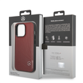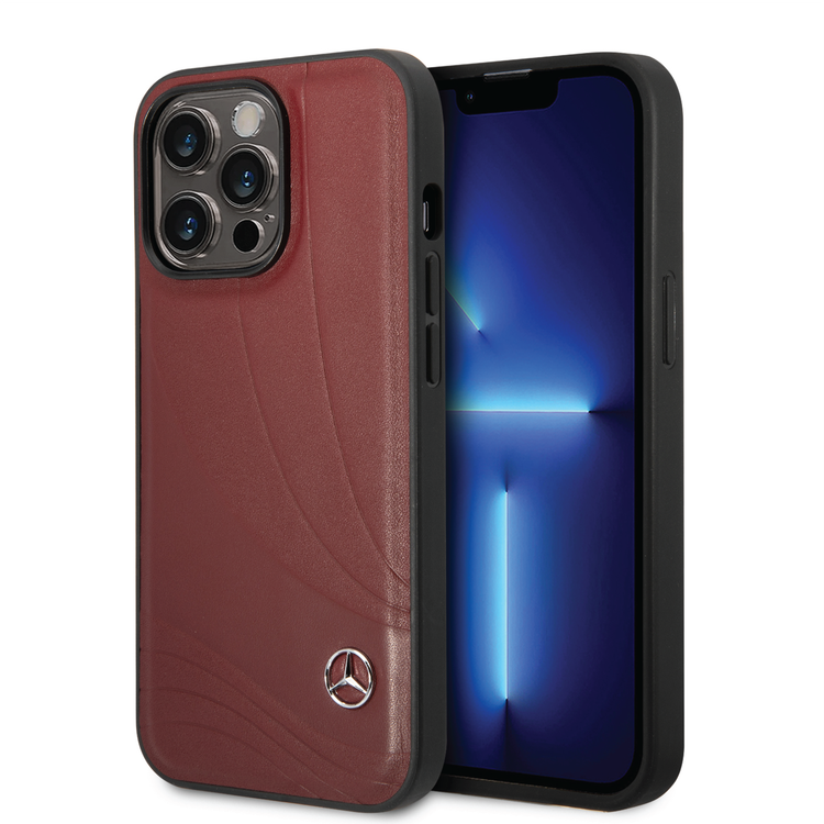 CG MOBILE Mercedes-Benz Genuine Leather Case With New WaveIII Pattern, Compatible w/ 14 Pro Max (6.7") Scratch & Drop Protection, Wireless Charger Compatibility - Red