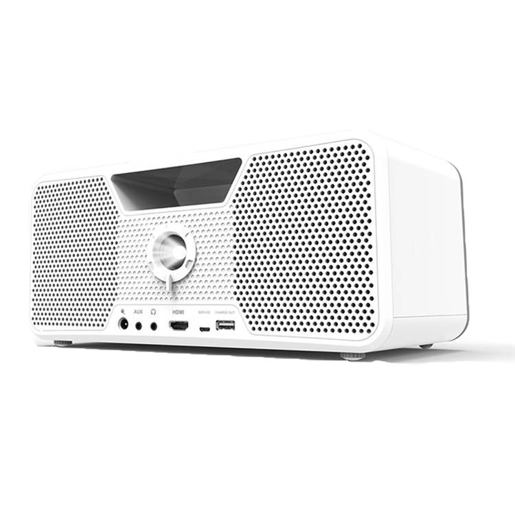 بروجكتور Dashbon Flicks اللاسلكي BoomBox مع اتصال HDMI متعدد الاستخدامات وبلوتوث 4.0، صوت هاي فاي، وقت تشغيل للأفلام 8 ساعات، ووقت تشغيل للموسيقى 56 ساعة - أبيض