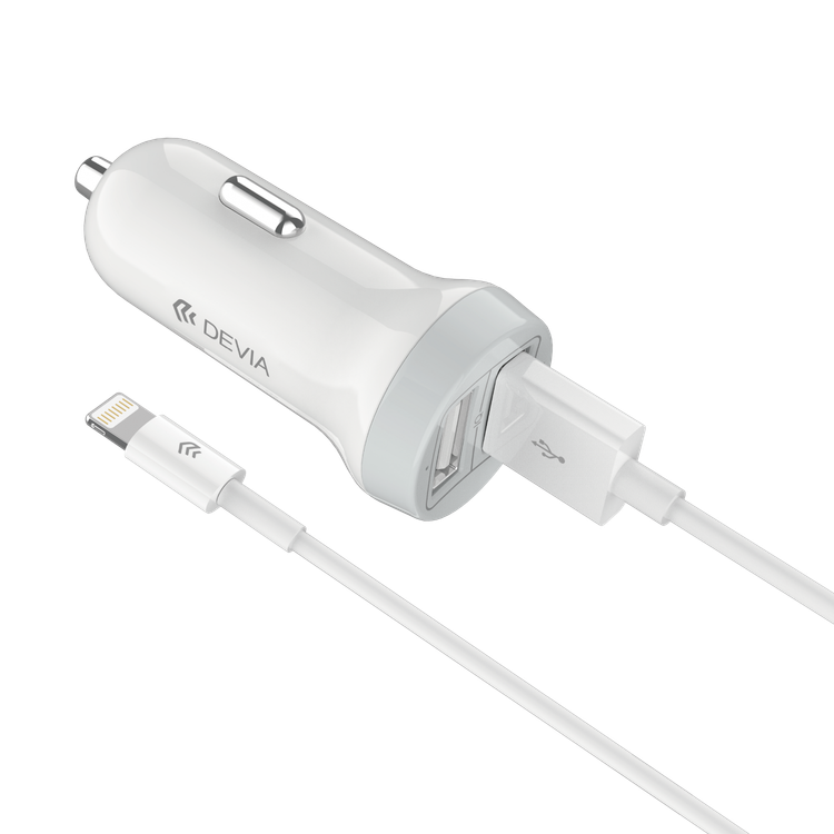 ديفيا - شاحن سيارة Smart Series 3.1 أمبير مع كابل Lightning بطول 1 متر 2.1 أمبير - أبيض