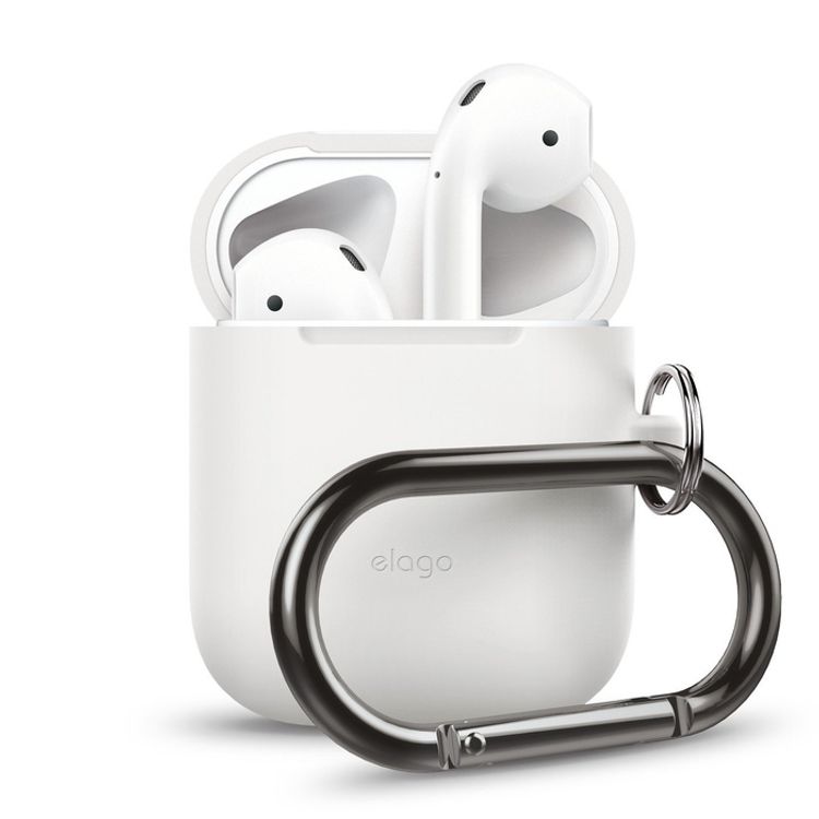 إيلاجو جراب تعليق ايربودز متوافق مع ابل ايربودز من الجيل الأول والثاني ، مقاوم للخدش ومقاوم للسقوط ومقاوم للغبار والامتصاص مع جراب معلق لسماعات ابل ايربودز 1/2 ، متوافق مع علبة الشحن اللاسلكي ، أحمر - أبيض