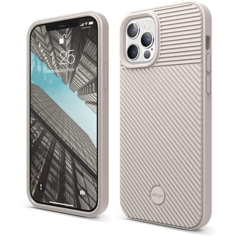 إيلاجو جراب وسادة من مادة بولي اليوريثان الحراري متوافق مع ايفون 12 بروماكس (6.7 بوصة) ، شريط حافة ، جراب ممتص للصدمات رائع ، متوافق مع الشحن اللاسلكي - بيجي
