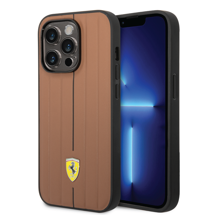 حقيبة فيراري جلدية مع خطوط منقوشة وشعار درع أصفر - آيفون 14 برو ماكس - جمل