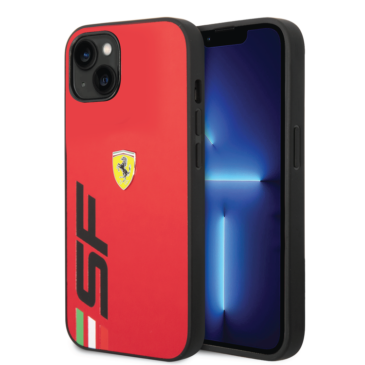 Ferrari PU Leather Case with Printed Big SF Logo iPhone 14 Compatibility - Red