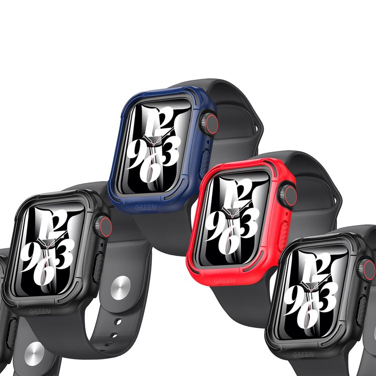 كفر حماية بحافة محافظة Guard Pro PC/TPU من Green Lion مع واقي زجاجي، سهولة الوصول إلى جميع المنافذ، حافظة بديلة مضادة للخدش متوافقة مع ساعة Apple 44 مم - أحمر