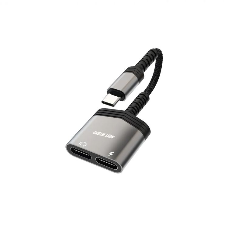محول موزع 2 في 1 من Green Lion من النوع C إلى النوع C (الشحن والصوت)، تصنيف الإدخال 9 فولت/2 أمبير، سرعة شحن قصوى 60 وات - أسود