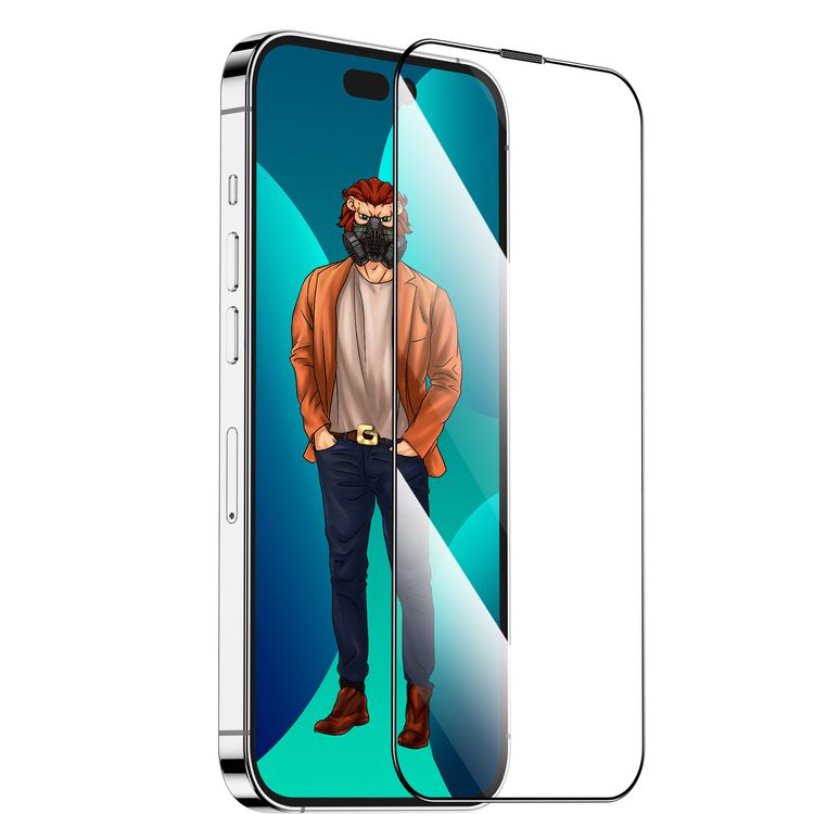 واقي شاشة زجاجي بحافة دائرية ثلاثية الأبعاد بتصميم أسد أخضر لهاتف آيفون 14 برو ماكس - شفاف