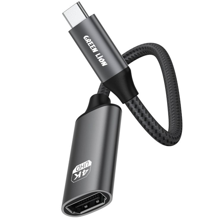 كابل محول USB-C إلى HDMI بدقة 4K من Green Lion، محمول، التوصيل والتشغيل، وضع المرآة، الوضع الممتد، توافق واسع، طول الكابل 20 سم - أسود