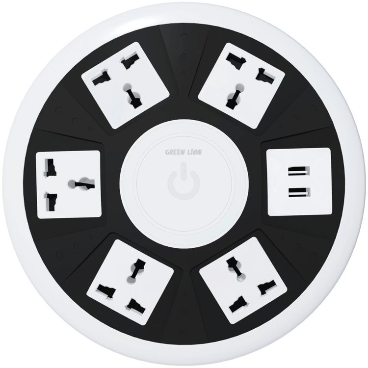 مقبس طاقة 7 في 1 من Green Lion مع 5 منافذ عالمية ومنفذين USB وكابل بطول 2 متر - أبيض