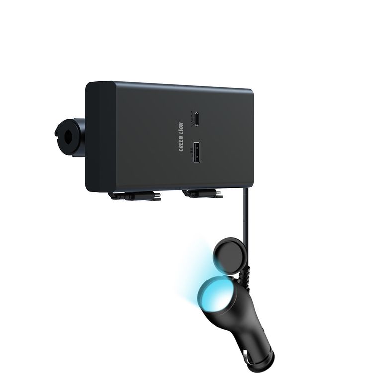 شاحن سيارة للمقاعد الخلفية من جرين لايون بقوة 65 واط مع كابلات قابلة للسحب، Type-C PD بقوة 45 واط، شحن سريع، حماية متعددة، صغير ومحمول - أسود