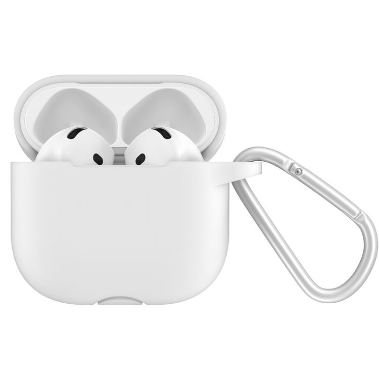 حافظة سيليكون من سلسلة برلين من جرين ليون لسماعات ايربودز 4، حلقة معدنية، حماية كاملة 360 درجة، ماصة للصدمات، سيليكون لطيف على البشرة، مادة قابلة للغسل - أبيض