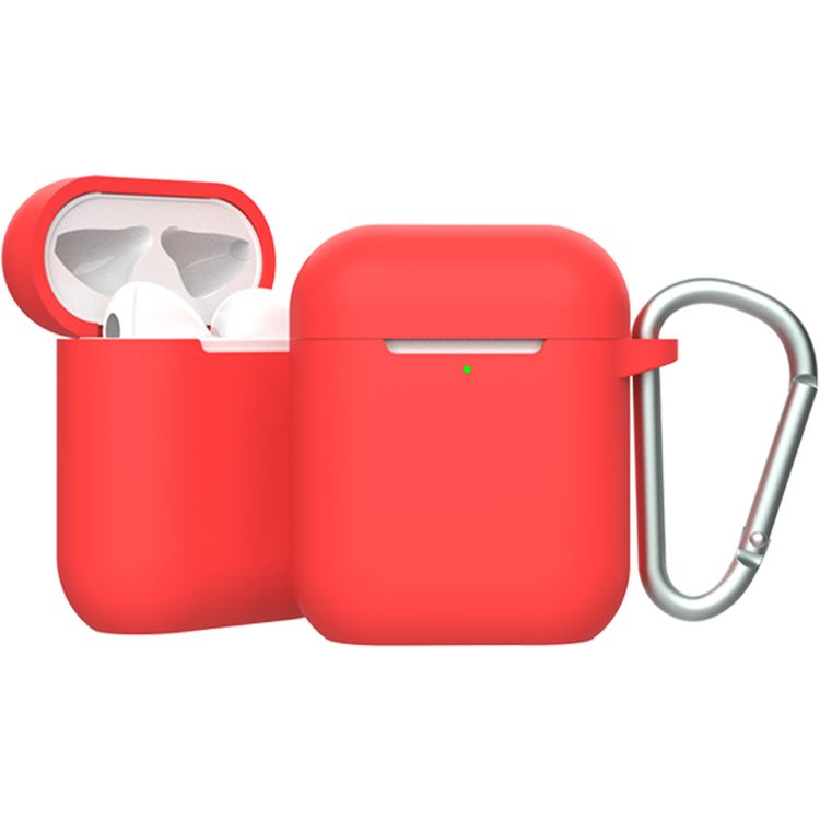 غرين جراب من السيليكون من سلسلة برلين مع حلقة مضادة للفقد ومقاومة للخدش وغطاء ممتص للصدمات وغطاء حماية من السقوط متوافق مع ايربودز 1/2 - احمر