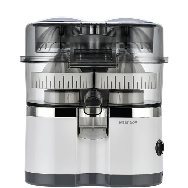 صانع عصير الحمضيات جرين ليون بمحرك من النحاس بنسبة 100%، رفع وضغط تلقائي، وظيفة نصف برتقال مقطوعة، حماية من إنسداد البرتقال، أقدام غير قابلة للانزلاق، صندوق عصارة قابل للفصل - أبيض