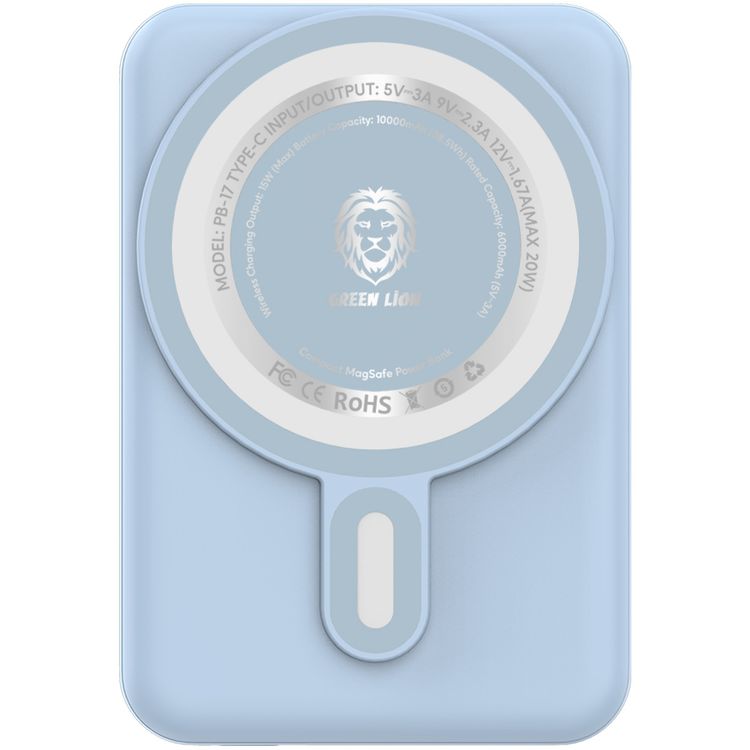 بنك طاقة ماغسيف مدمج 10000ميلي امبير بالساعة 15 واط بي دي 20 واط مع حامل - أزرق