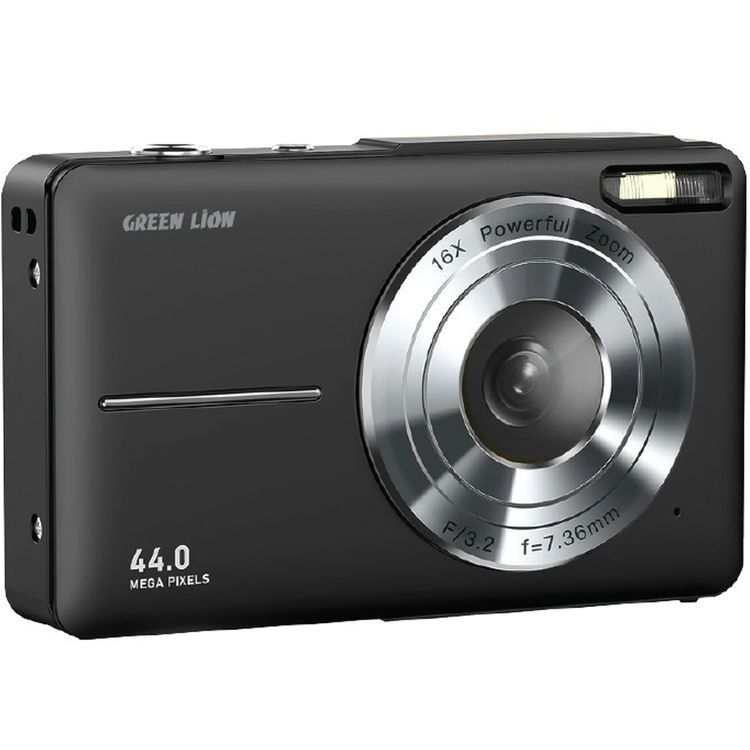 كاميرا رقمية Green Lion بدقة فيديو 1080 بكسل، وقت عمل 2.5 ساعة، كاميرا ويب، كاشف للوجه، شاشة 2.4 بوصة، فلتر تجميل - أسود