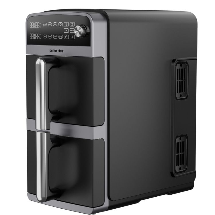 القلاية الهوائية ذات الطابقين من جرين ليون، 2400 واط، 110-240 فولت، تردد 50-60 هرتز، سعة 5 لتر + 5 لتر، درجة حرارة 0-200 درجة مئوية، وظيفة تلقائية، وظائف المزامنة والمطابقة - لون أسود.