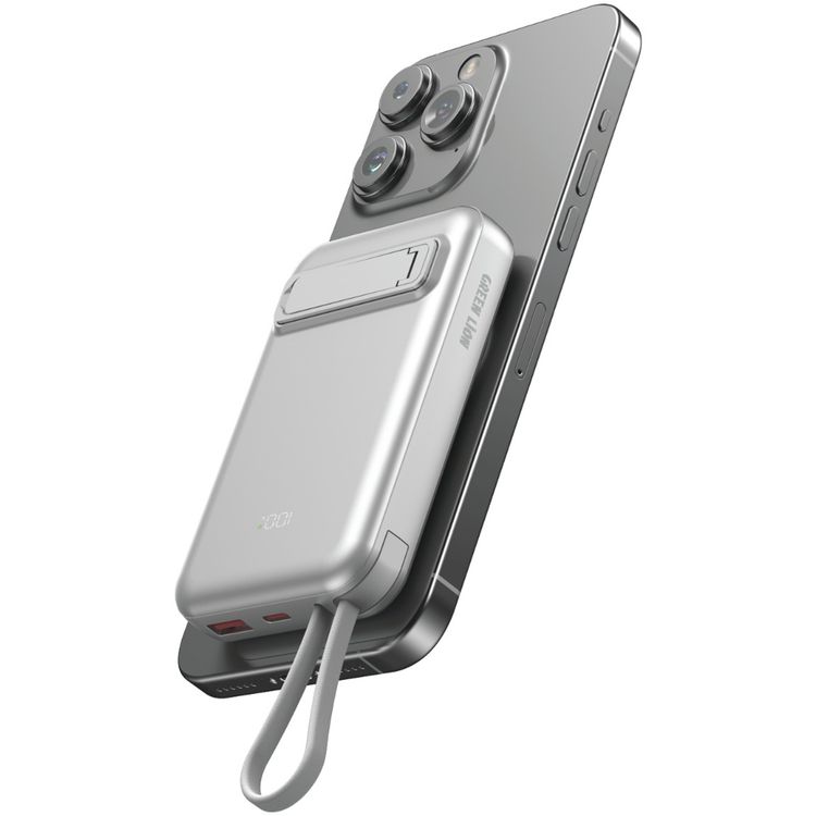 يمكن لبنك الطاقة Green Lion DXB MagSafe شحن جميع أجهزتك، فهو فعال ومتعدد الاستخدامات. ينقل الطاقة إلى الأجهزة المتوافقة. لديها خيارات إخراج لاسلكية تبلغ 5 واط، 7.5 واط، 10 واط، و15 واط. بالإضافة إلى ذلك، تضمن الحماية المتكاملة من الدائرة القصيرة سلامة المستخدم. مع بطارية قوية بقوة 10000 مللي أمبير في الساعة، يمكن لبنك الطاقة هذا تلبية متطلبات الشحن الخاصة بك لفترة طويلة. إنه شريك موثوق به للعديد من الأجهزة. وهو يدعم العديد من المخارج: مخرج كابل من النوع C بقدرة 22.5 وات، وType-C PD20W، وUSB-A بقدرة 22.5 وات. يحتوي بنك الطاقة على مدخل سريع من النوع C بقدرة 18 وات لإعادة الشحن. يعد بنك الطاقة Green Lion DXB MagSafeمثاليًا للشحن أثناء التنقل. إنها صغيرة وعملية وسهلة الاستخدام. لديها اتصالات مدمجة للراحة. شاشة رقمية تعرض حالة الشحن.