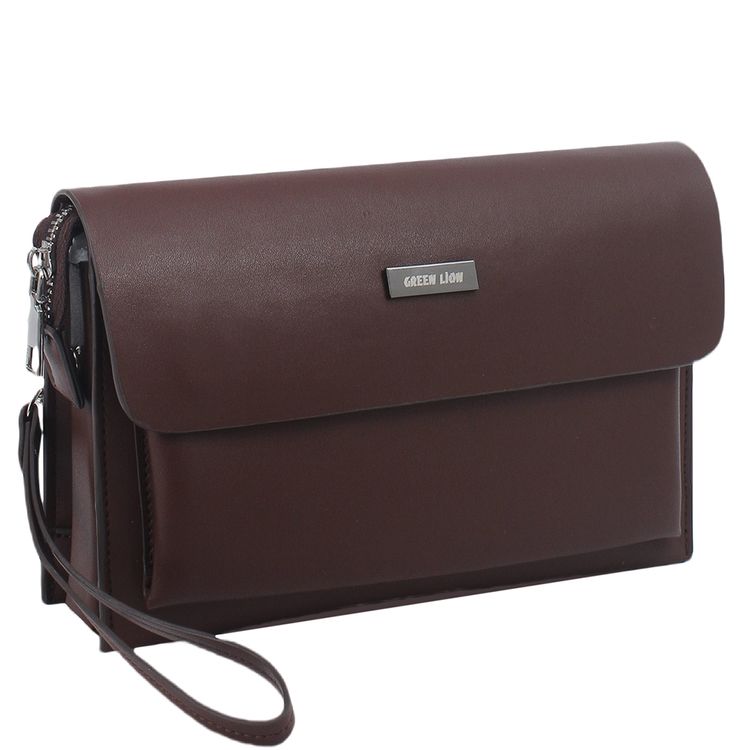 حقيبة كلاتش مارا من جرين ليون مع جيوب متعددة، نسيج دقيق، جلد PU مقاوم للماء، سهلة الحمل والتعامل، سعة كبيرة، مناسبة للإكسسوارات - بني