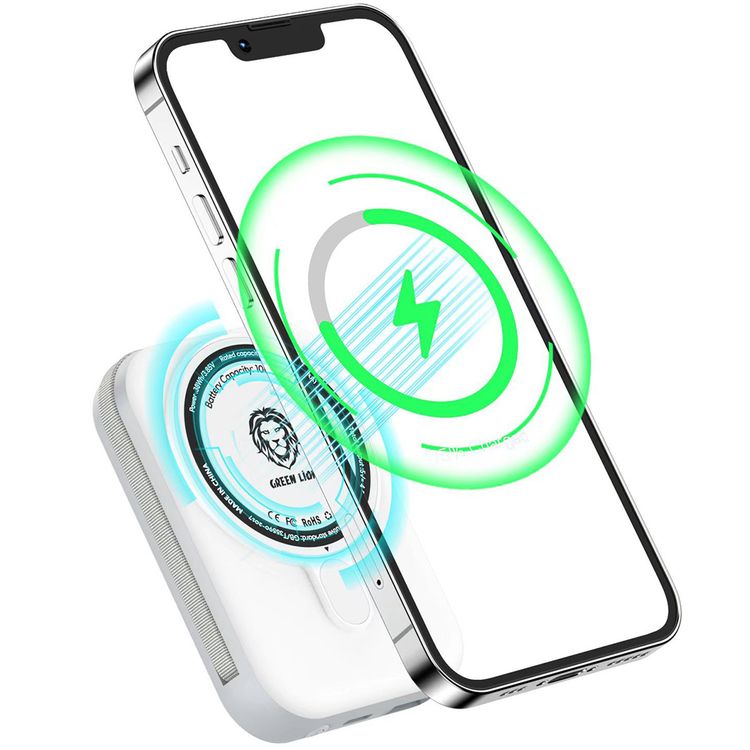 باور بانك ماج سيف جرين ليون موناكو بسعة 10000 مللي أمبير مع كابل لايتنينج مدمج، متوافق مع الشحن اللاسلكي، مخرج بقوة 22.5 واط PD و QC، مخرج لاسلكي بقوة 15 واط، شاشة LCD - أبيض