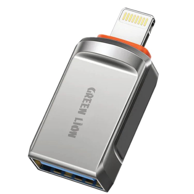 محول Green Lion OTG 2.0، من USB-A إلى Lightning، للاستخدام الطويل الأمد، توافق واسع، سرعة نقل عالية 480Mbps، غلاف من سبائك الزنك - رمادي